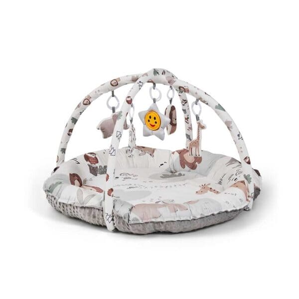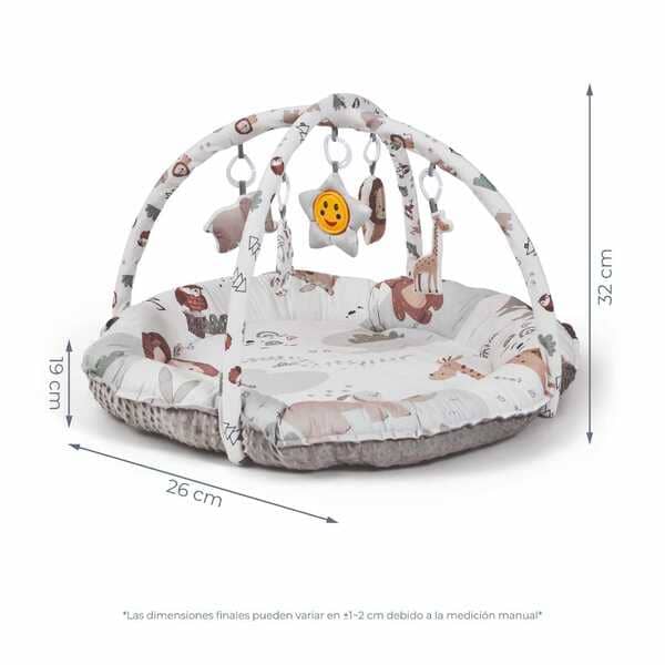 Un espacio que crece con tu hijo: desde recién nacidos hasta la etapa de gateo y juego activo, la Alfombra Zoola de Ms se adapta a cada etapa. Mantén los arcos y juguetes colgantes para estimular al bebé o retíralos para transformar la zona en un espacio de juego independiente, versátil y seguro.