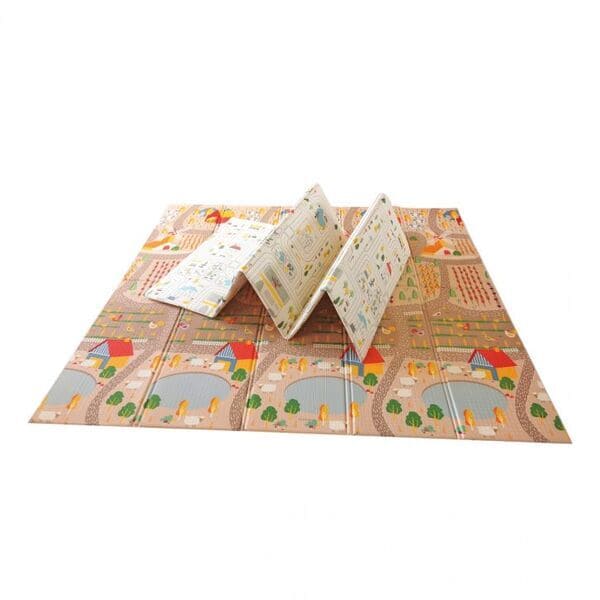 La alfombra de juegos es ideal para fomentar el gateo y el desarrollo del bebé. Una vez hayáis dejado de jugar, limpiarla y guardarla será muy sencillo, y podrás llevarla a todas partes. Nuestra alfombra de juegos está fabricada con espuma de alta densidad a prueba de golpes e impresa en tinta vegetal libre de tóxicos, proporcionando un espacio seguro, divertido y estimulante para tu peque.