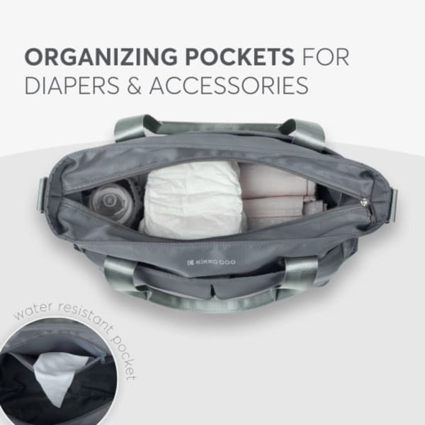 - Soluciones de almacenamiento inteligente : cuenta con un bolsillo principal de amplia apertura, compartimentos organizadores para pañales y accesorios, y bolsillos laterales elásticos con una abertura para pañuelos para un fácil acceso.
