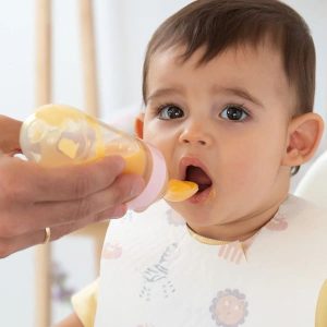 Con esta práctica cuchara dispensadora de silicona podrás empezar a darle a tu bebé la papilla o puré de forma sencilla y cómoda tanto dentro como fuera de casa.