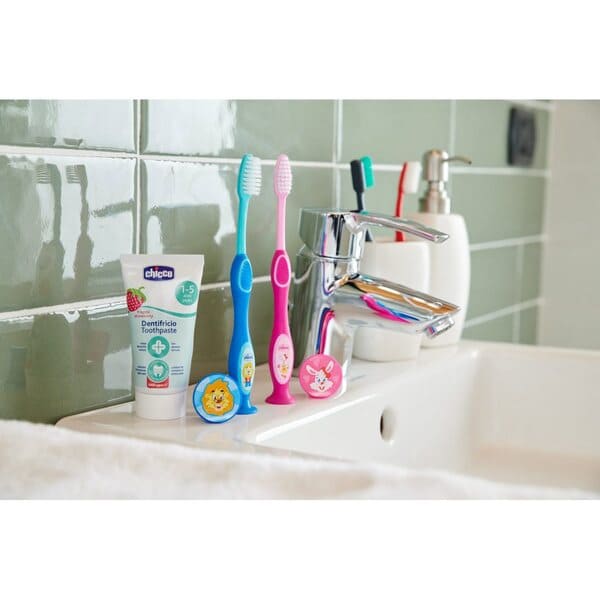 - TAMBIÉN EN SET CEPILLO + PASTA: Disponible también en Sets de Higiene Oral de Chicco, ideales para la limpieza de los dientes fuera de casa o en la guardería.