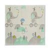 - Gráficos alegres de doble cara: amigo animal en un lado y un bosque de colores suaves y soñadores en el otro