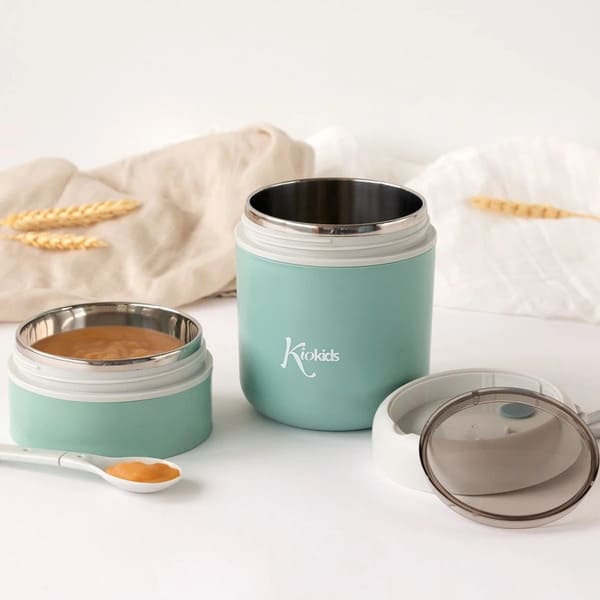 Incluye una práctica cuchara guardada en la tapa superior, que lo hace más completo y cómodo para las salidas familiares.