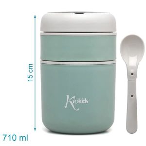 En sus dos compartimentos (180 y 530ml) se puede transportar de forma independiente distintos alimentos, manteniendo su temperatura 4h, gracias a su interior en acero inoxidable 304, con cámara de aire y su cierre hermético en silicona.