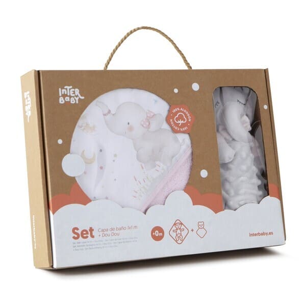 - Set Capa de Baño Elefante con Dou Dou mismo tono Rosa